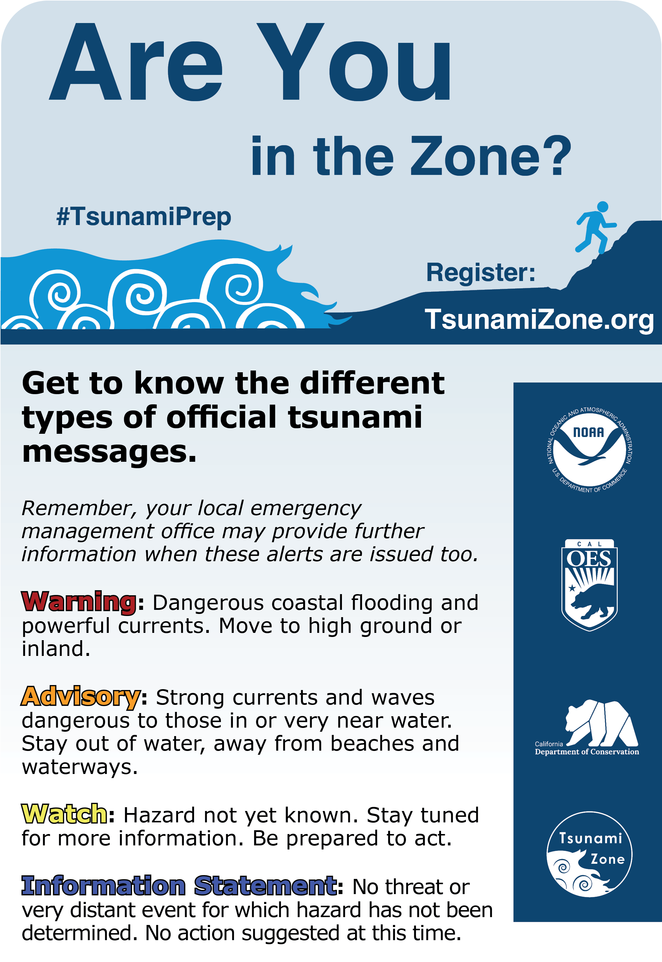 March 21 – 29, 2026 is California Tsunami Preparedness Week. Check out our list of resources to learn more about what you can do to be prepared for a tsunami, participate with others in a preparedness event or create your own!